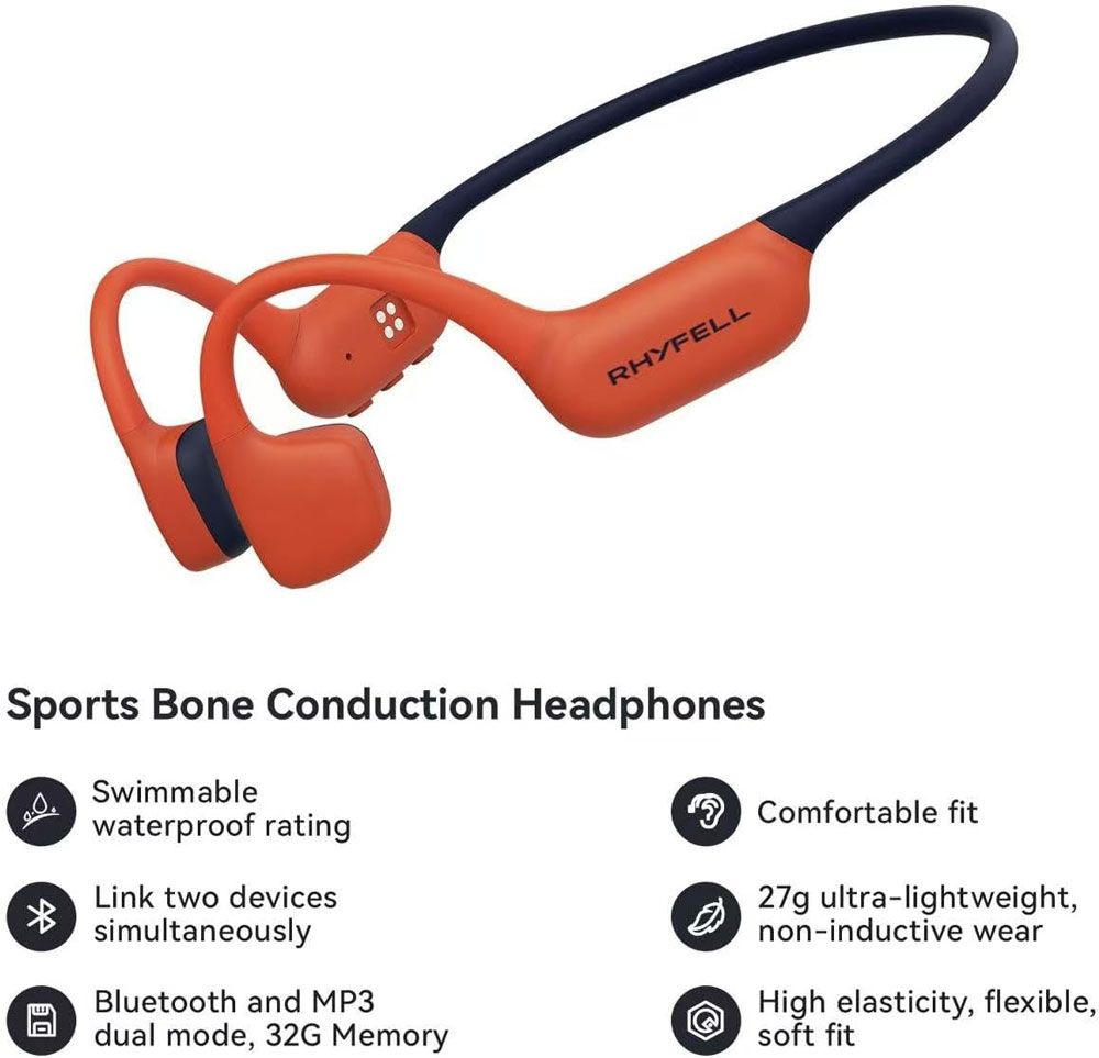 This particular model of Rhyfell bone conduction headphones is also IP68 Waterproof, so you can wear them while swimming. For that purpose, the headphones also have a built-in MP3 mode with 32GB of memory, meaning they can store and play up to 8000 songs in a variety of audio file formats.
