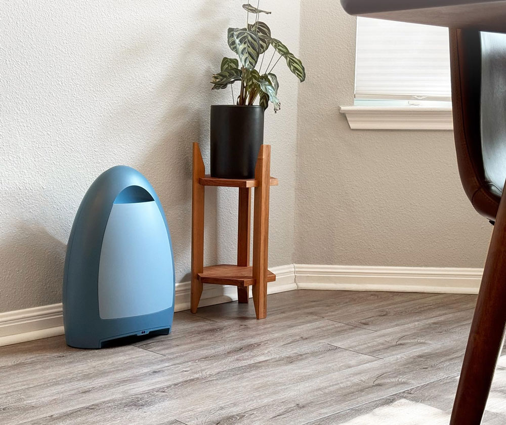 In addition to its dustbin duties, the Eye-Vac Home also cleans the surrounding air of dust, allergens, and air born irritants with its HEPA filtration system.