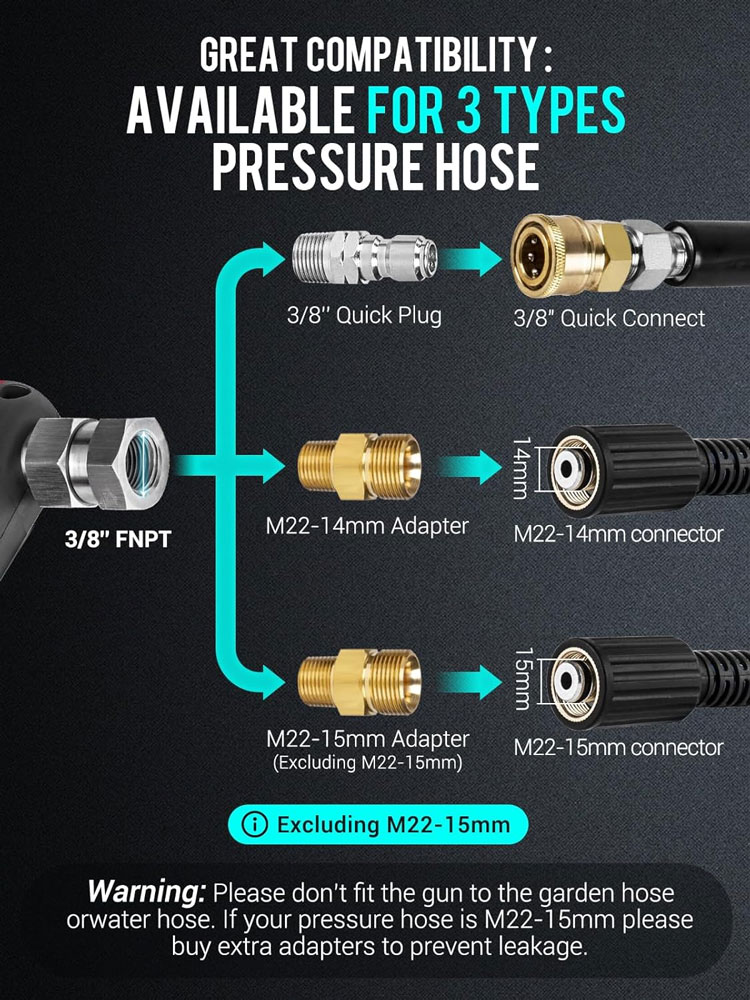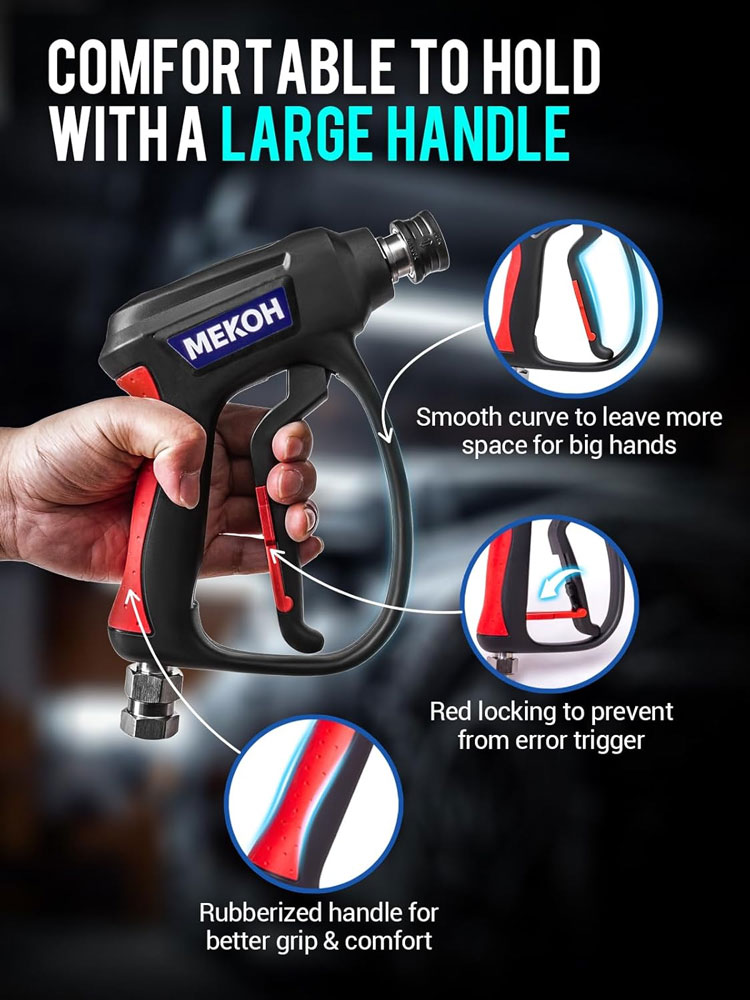 What sets this beast apart? For starters, it's built to withstand the Hulk-like rage of up to 5000 PSI and a deluge of 10 GPM, making it the go-to gadget for not just the enthusiastic homeowner but also the prosumer with a gleam in their eye and the commercial operator with grit in their teeth. With a 3/8" quick connect that laughs in the face of leaks, and a 360-degree integrated swivel that dances smoother than Fred Astaire, this gun is as much a pleasure to use as it is effective. The rubber grip ensures your hand feels like it's holding onto luxury, not just a tool that can obliterate dirt with the cold efficiency of a hitman. And, with the promise of a fatigue-minimizing low force trigger, you can keep on washing until your heart's content � or at least until your surfaces sparkle like the top of the Chrysler Building.