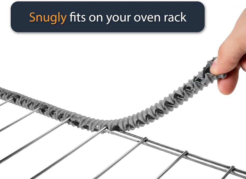 These heat-resistant oven rack guards say they protect against carelessness and laziness. And also poor depth perception. And also the times you're bent over in the oven and your girlfriend comes and grabs your berries from behind. The guards come in sets of three 14" or two 22" long ridged tubes that snap onto the outer metal posts of each oven rack. They're made of silicone and intended to withstand oven temperatures of up to 450 degrees F. Note: that doesn't mean you should heat up your oven, grab one, and hang on tight. Just that the occasional bump and brush shouldn't leave you with ER-worthy burns.